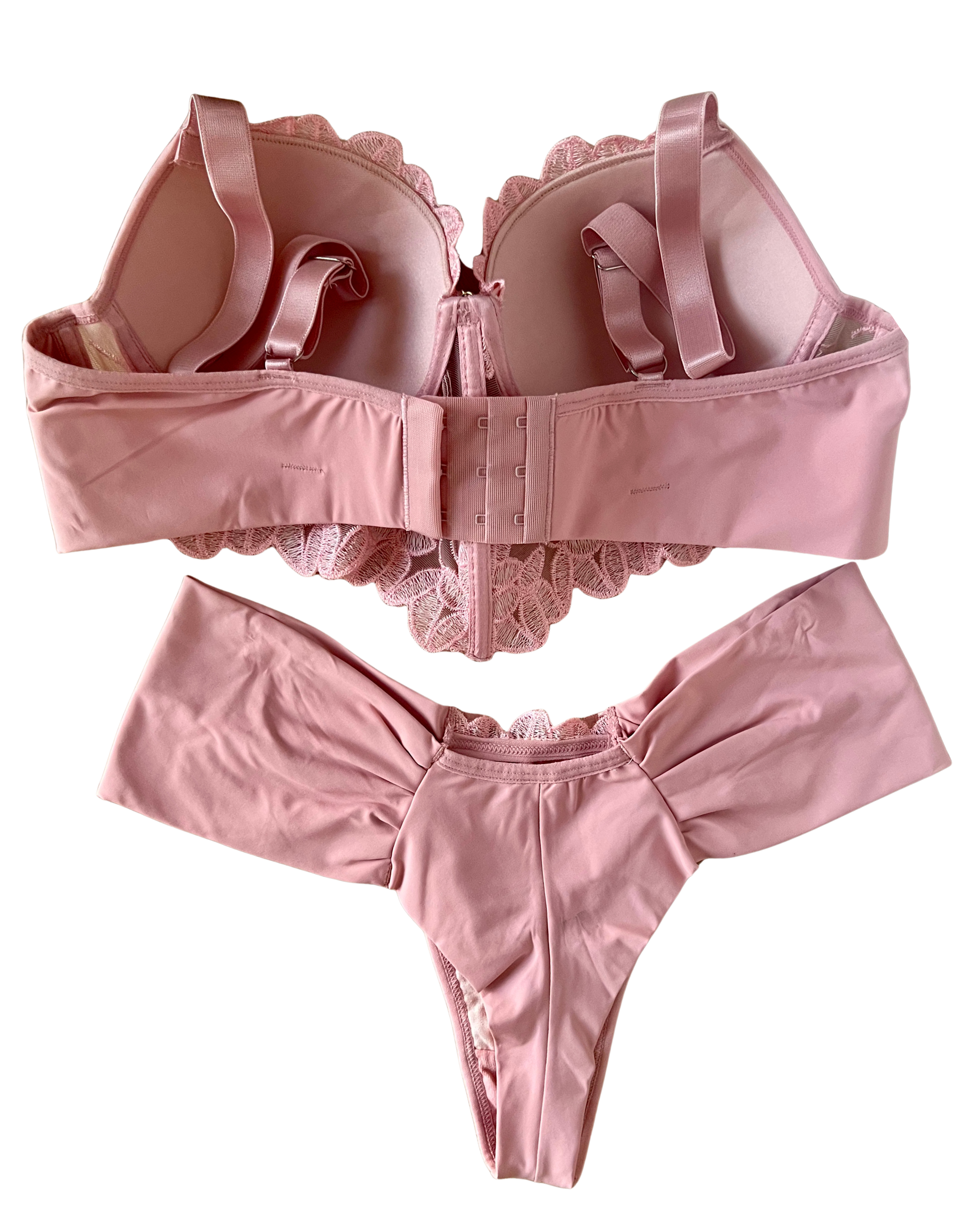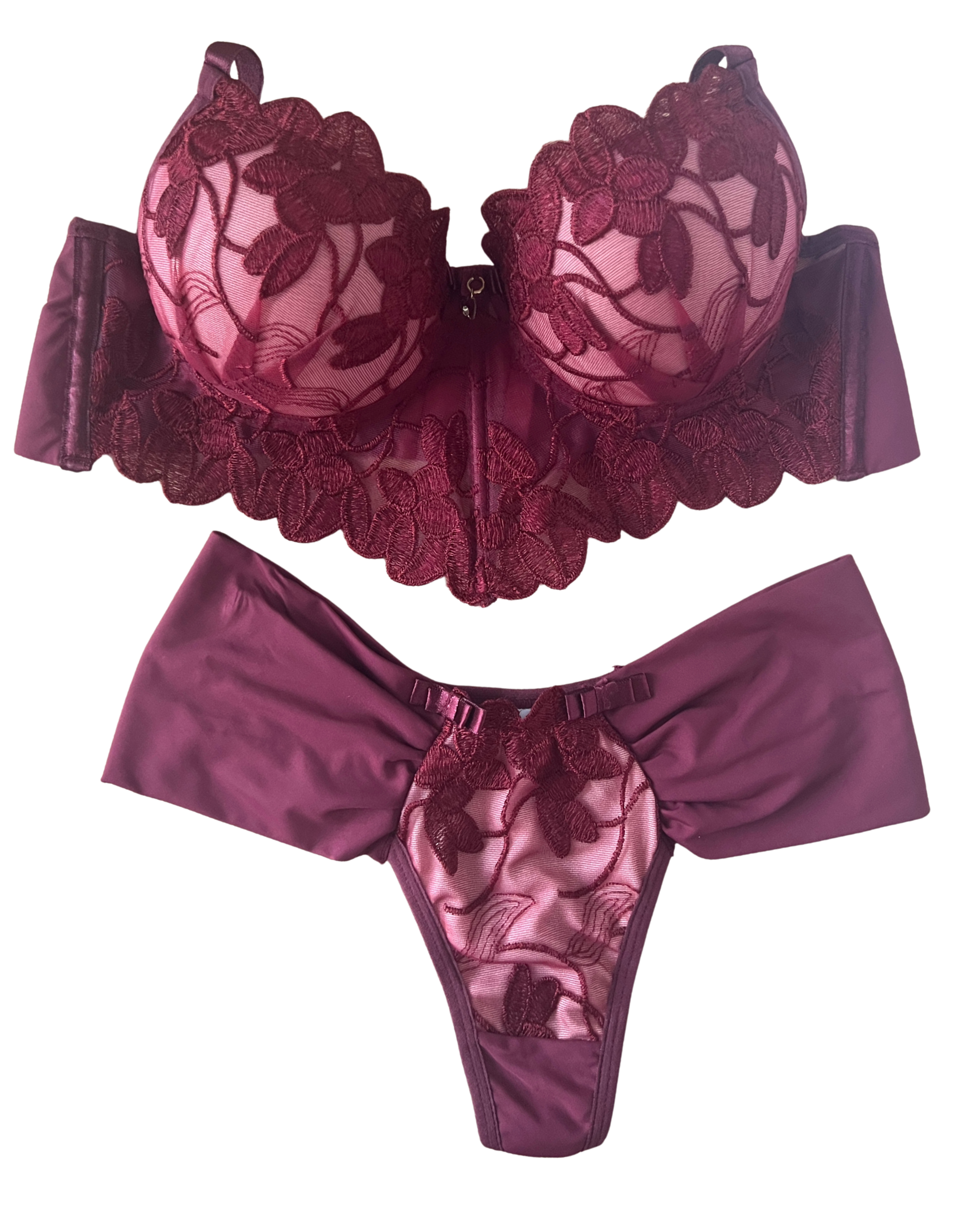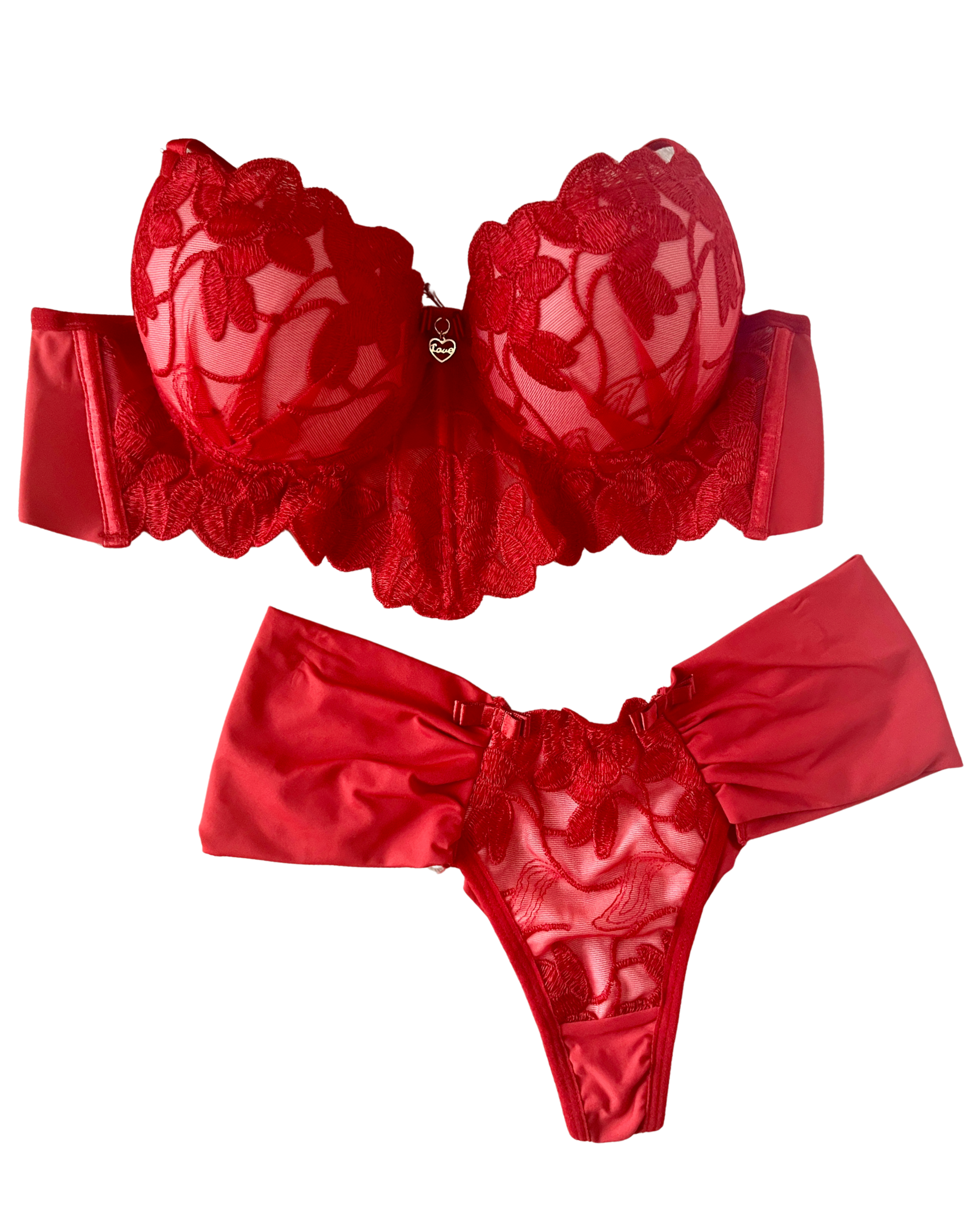 Turn up the heat with this stunning lace & microfiber Lingerie Set. Designed to make you feel confident and irresistible, this set features a beautifully embroidered lace bra with delicate floral details and matching thong-style bottoms. The soft microfiber fabric feels luxurious on the skin, while the intricate lace adds a touch of sophistication and allure.